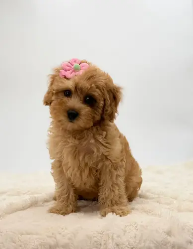 Meet Aria, the cutest little Cava Poo ready to find her forever home. Aria’s big sparkling eyes are always bright and curious, and when she tilts her head, it’s just impossible not to melt. Whether it’s chasing her favorite squeaky toy, or bouncing around in the grass, she knows how to have a good time. Aria has been vet checked, microchipped, and is up to date on all her shots and dewormer. Don’t miss the opportunity to welcome this sweet little baby into your life. She will bring nothing but joy!