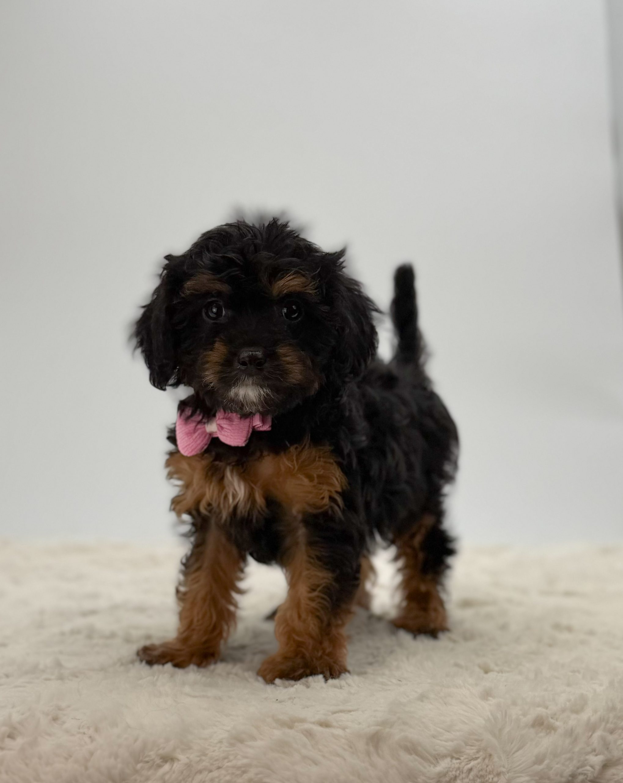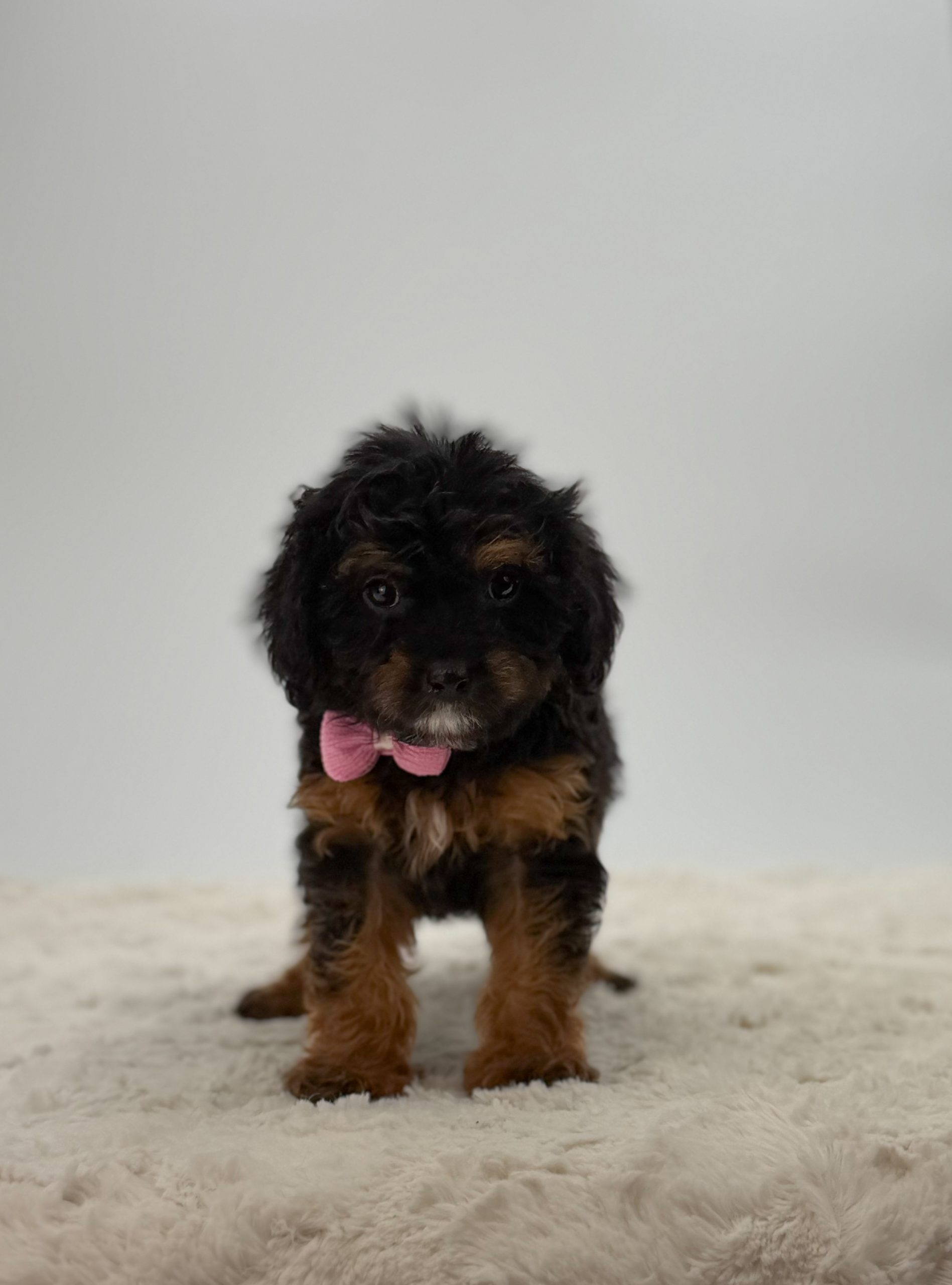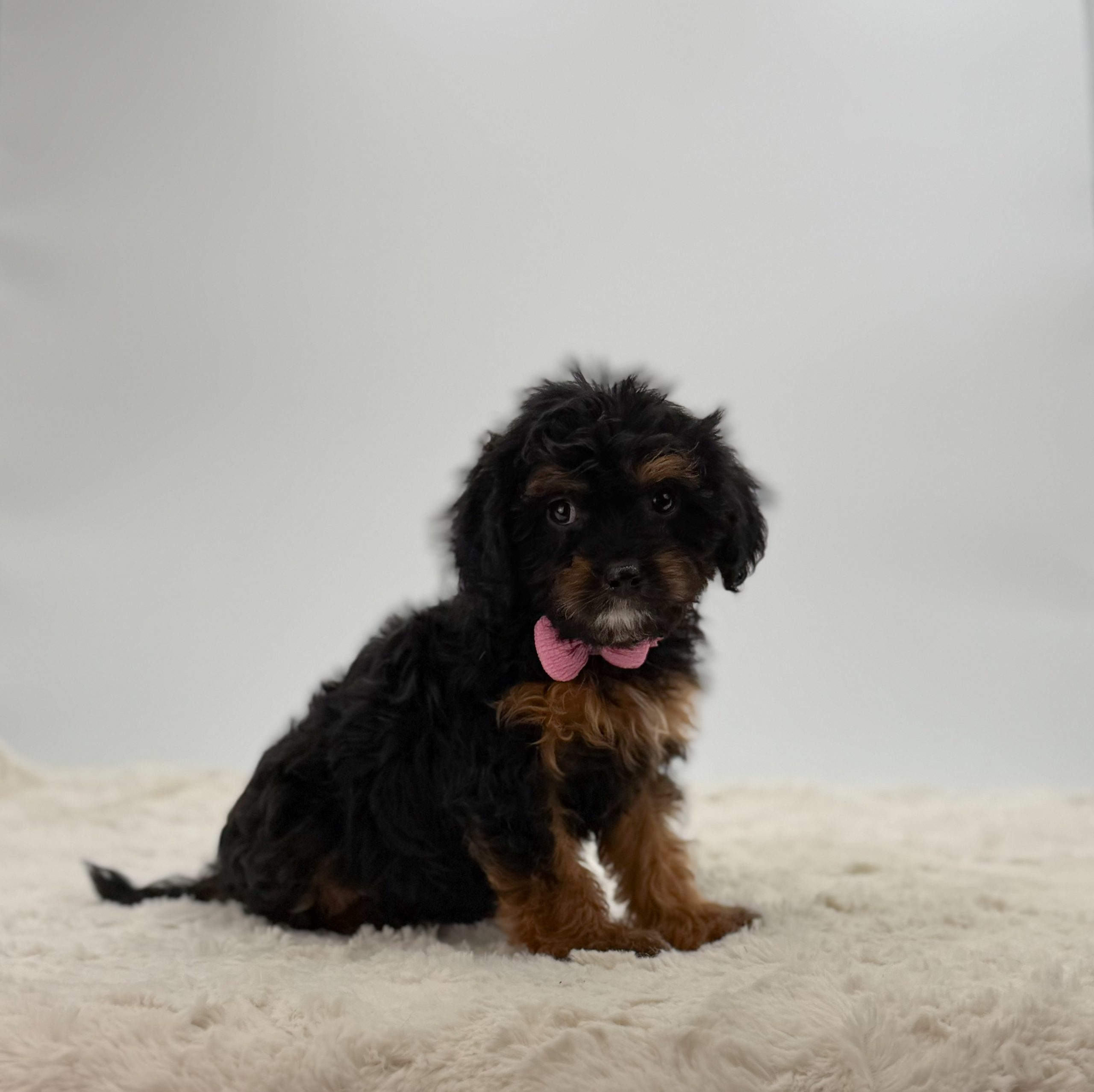 Meet Isla, our beautiful black and tan Cavapoo ready to bring joy and love to your life. With her soft, wavy coat and bright, expressive eyes, she captures hearts effortlessly. Whether she’s chasing after a ball in the yard or happily wagging her tail as she plays with her favorite toys, Isla’s lively spirit is simply infectious! She is friendly with kids and other pets, making her an ideal companion for anyone looking for a furry friend. She has been vet checked, microchipped, and is up to date on all her shots and dewormer. Don’t miss this opportunity.